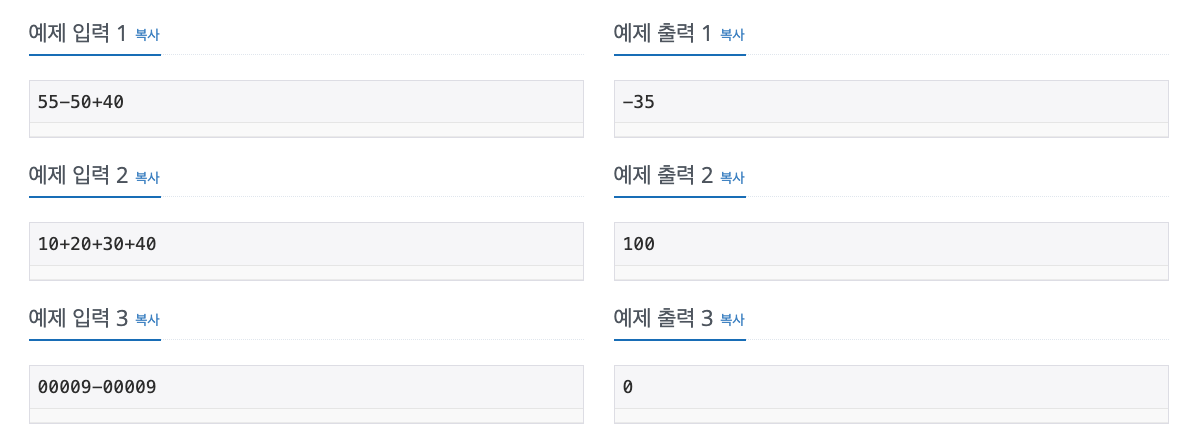 # 다른 방법? 전에 생각했던 마이너스를 위주로 생각해보자 -> 마이너스 기준으로 split?