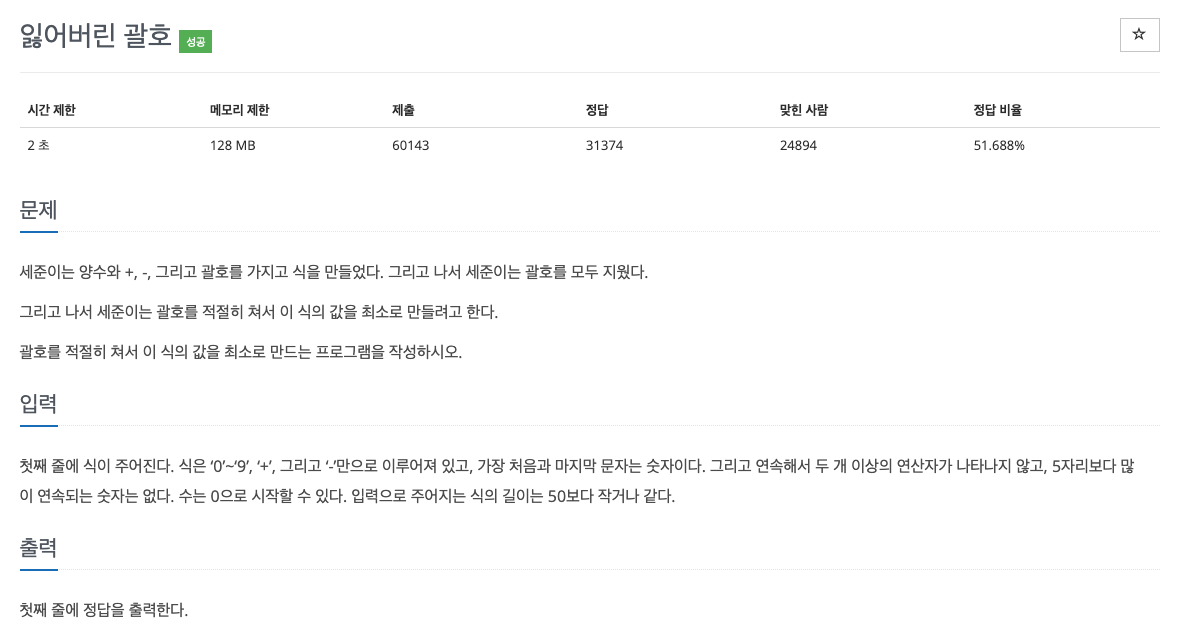 [Greedy,String] Sliver 2 1541 잃어버린 괄호 본문